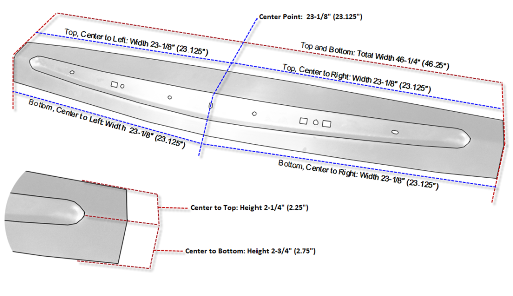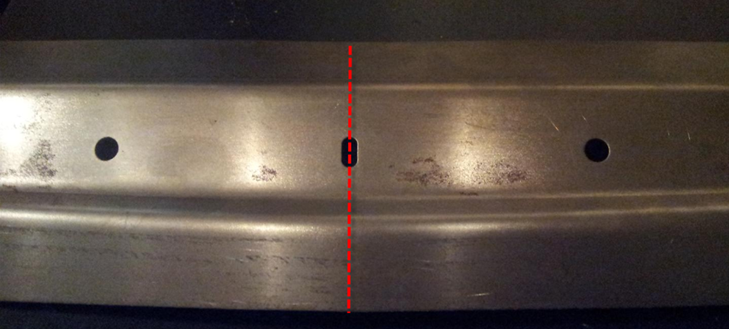 A quick way to mark the center of the bracket is to locate the center hole. Draw a line on the bracket to mark it. You will also need to find the center of the trunk lid and mark that with a line. The lines on the bracket and trunk lid should match up when test fitting and when welding. It’s very important to center the bracket during installing.