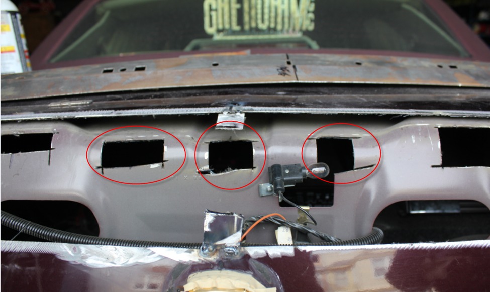 If you do not cut out the inner portion of the trunk lid you will need to add access slots. You need these slots to put the nuts onto the light when you install it, you will also need access for the wiring. Look at the light and the bracket and figure out where you need to put holes on the trunk. It might be easier to cut out a small slot the size of the light.