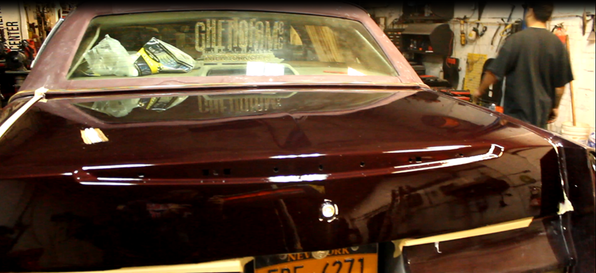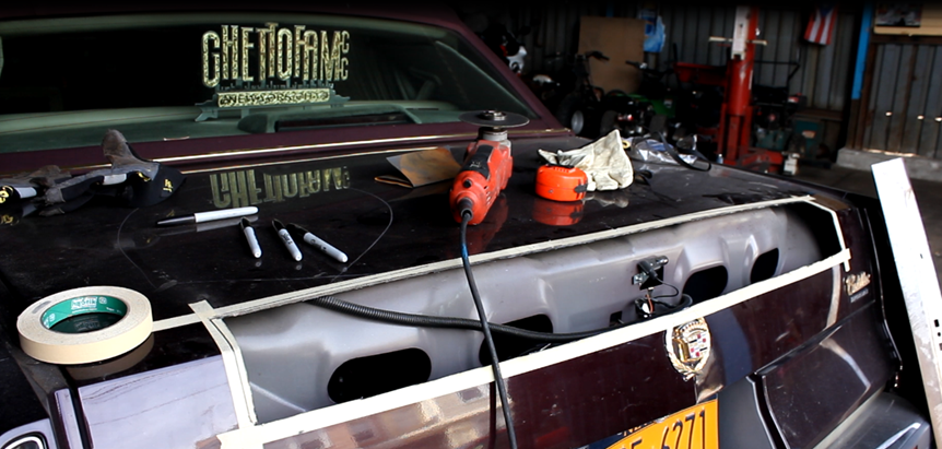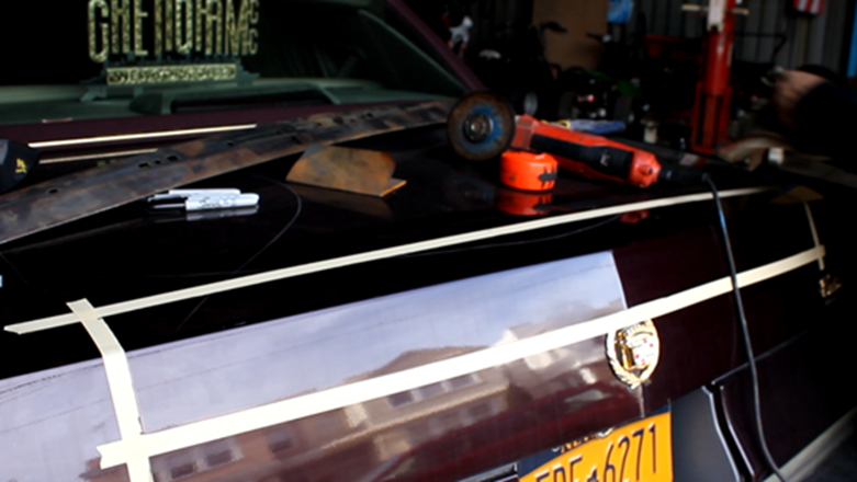 b. Tape the top side of the trunk lid, in the last step you measured 2-1/4″ from the trunk edge -> up on the left and the right side. The tape connecting the 2 marks should be as straight as possible.