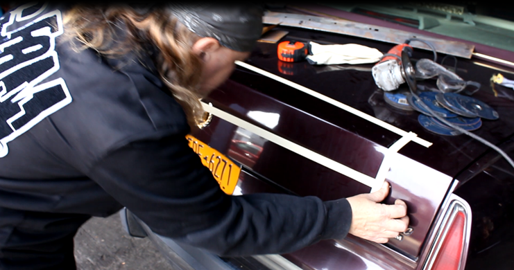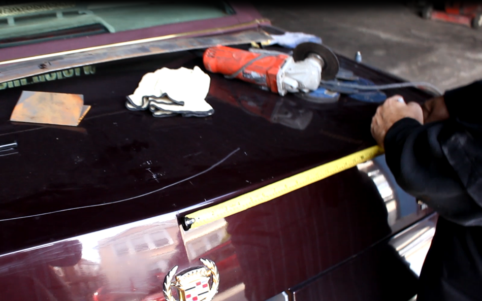 a. Measure the trunk lid end to end and mark the center of the trunk with a line. This line should be longer and be bigger than the brackets size. This is so that when we cut out the section we can still see the line and line it up with the line we put on the bracket.